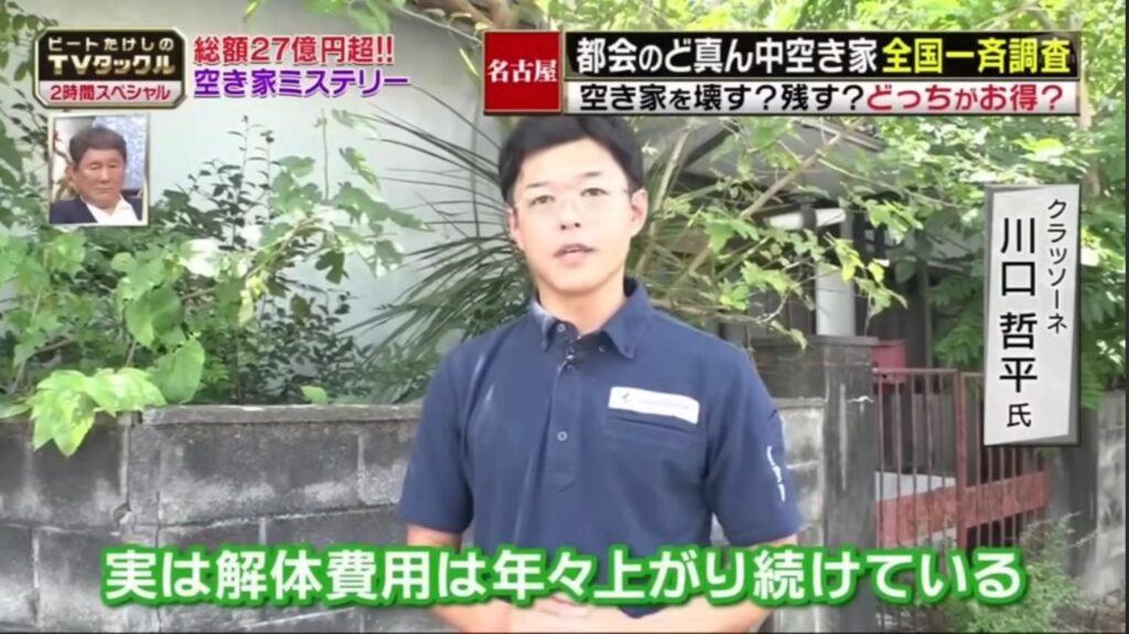 先日放送の『ビートたけしのTVタックル』で「空き家問題」に焦点が当てられました。このような人気番組で「空き家問題」が取り上げられるということは、最早全国的な問題なのだと感じています。不動産、解体に関わる弊社でも深く考えさせられる内容でした。